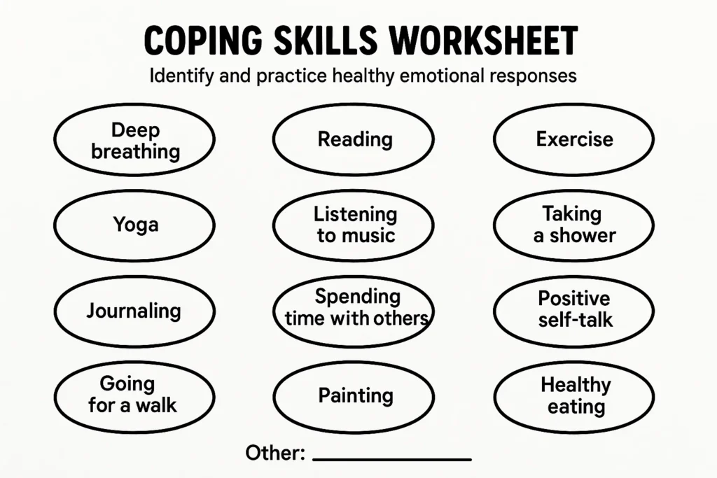 Adolescents benefit from coping skills worksheets that address peer pressure, self-esteem, and identity. Include gratitude logs and boundary-setting exercises.